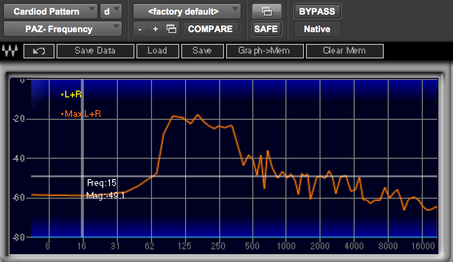 You can notice while using the Cardioid polar pattern, there’s more of a low frequency build up at around 80Hz to 400Hz.
