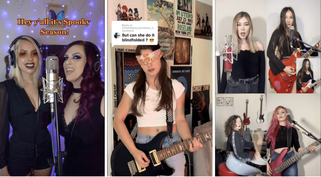 Reprenez une chanson d’Halloween déjà tendance! Si vous ajoutez une touche originale et que vous la transformez en son sur TikTok, d’autres créateur.rices peuvent l’utiliser pour leur contenu macabre, ce qui permet d’attirer les utilisateur.rice.s sur votre page ou de faire connaître votre musique. Daedricofficial a créé un court clip reprenant « This Is Halloween » qui a recueilli plus de 826,8 k likes sur la plateforme. Margot Beylier a créé un appel à l’action « duet this with instruments » avec sa vidéo interprétant « Sally’s Song » du classique culte « Les cauchemars avant Noël », ce qui est un moyen intelligent d’inciter d’autres créateur.rices à interagir avec votre contenu. Si vous ne chantez pas, vous pouvez toujours vous produire avec l’instrument de votre choix, comme Prestyn Smith qui interprète un solo de guitare les yeux bandés sur le thème de Ghostbusters. Vous pouvez même faire participer tout votre groupe, comme Crimson Apple