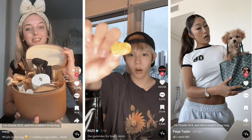 1. I’m Charli XCX and this is what’s in my bag… (original sound by champagnemami)