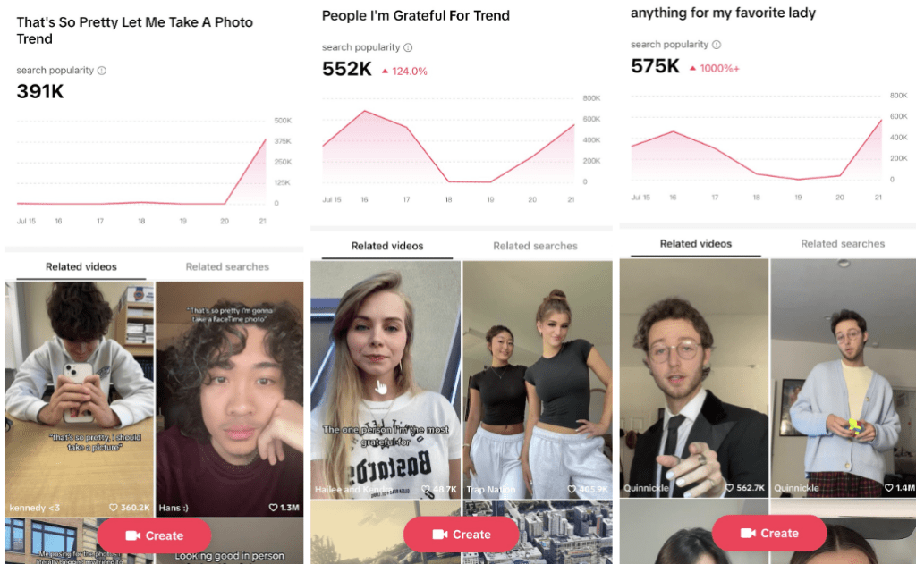 The Creator Search Insights “Content Gap” was created to empower TikTok creators with data-driven insights to help them create more relevant and engaging content that resonates with their audience and capitalizes on emerging trends. So if you ever feel uninspired and need some topic ideas, this is a very useful tool!