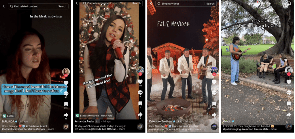 Last but not least, create Christmas content for your original music or cover song the same way you would if you were promoting a regular release but with a holiday twist! Whether that be singing it live by the fireplace, singing along over the recording in front of your Christmas tree, or performing the song outdoors in the snow. You can even take to the streets and get people’s reactions to the song, which is a popular trend on TikTok for artists trying to get traction on their songs or for their projects.