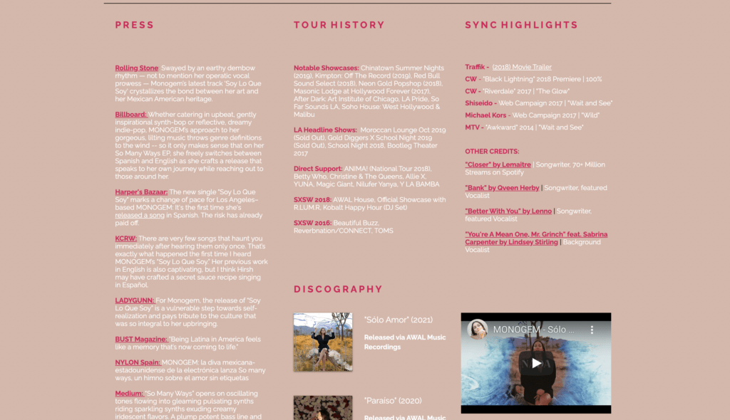 That being said, you don’t necessarily need an agency to be successful. Many website builders (such as Bandzoogle, Wix, etc.) actually have EPK templates available, or there are online platforms like SonicBids that can help you create an EPK if you feel you need the extra support.