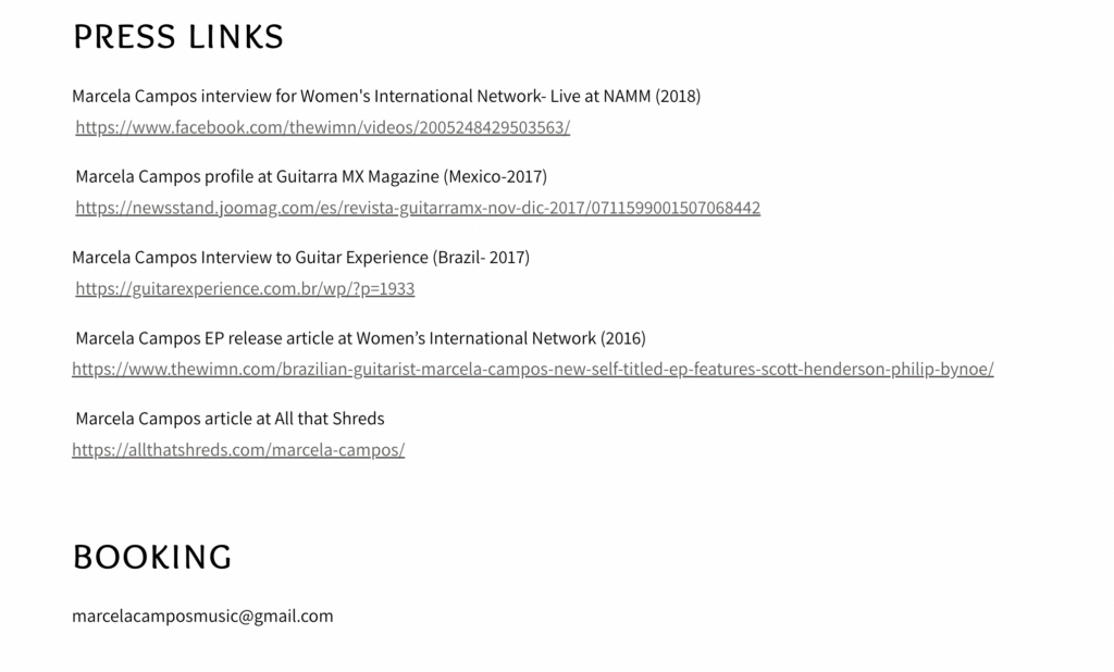 This is also a great place to include any music videos you may have, highlighting one or two that best reflect your work. Embedding them directly into your EPK page is ideal.