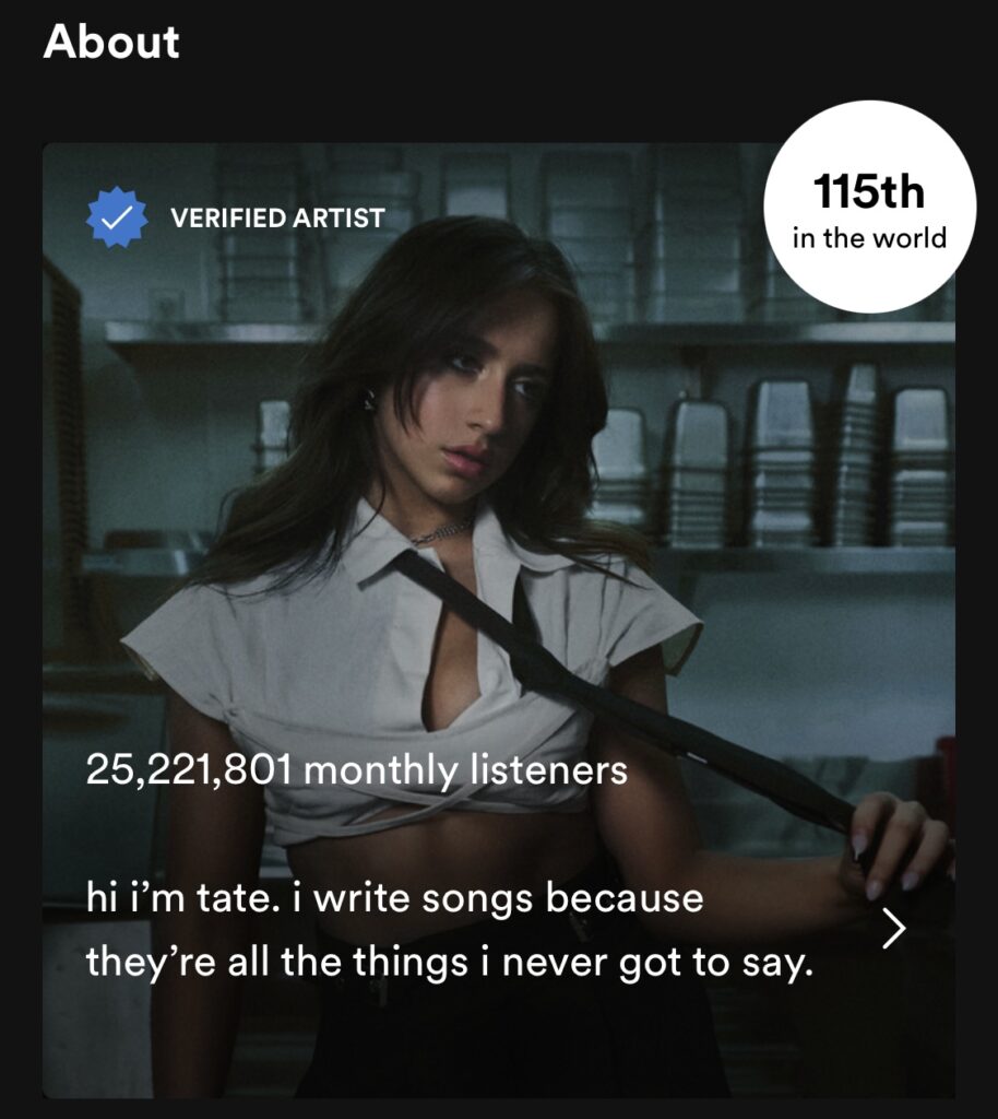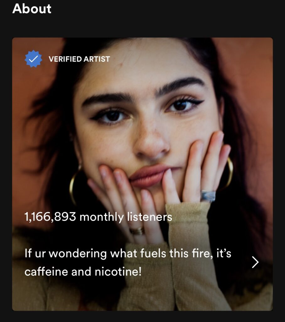 In fact, many artists have opted out of including a bio on Spotify at all, and instead use a curated selection of emojis or write a personalized message that gives listeners some insight into their personalities, rather than the traditional “I’m from, I have achieved, this is what’s next,” spiel.